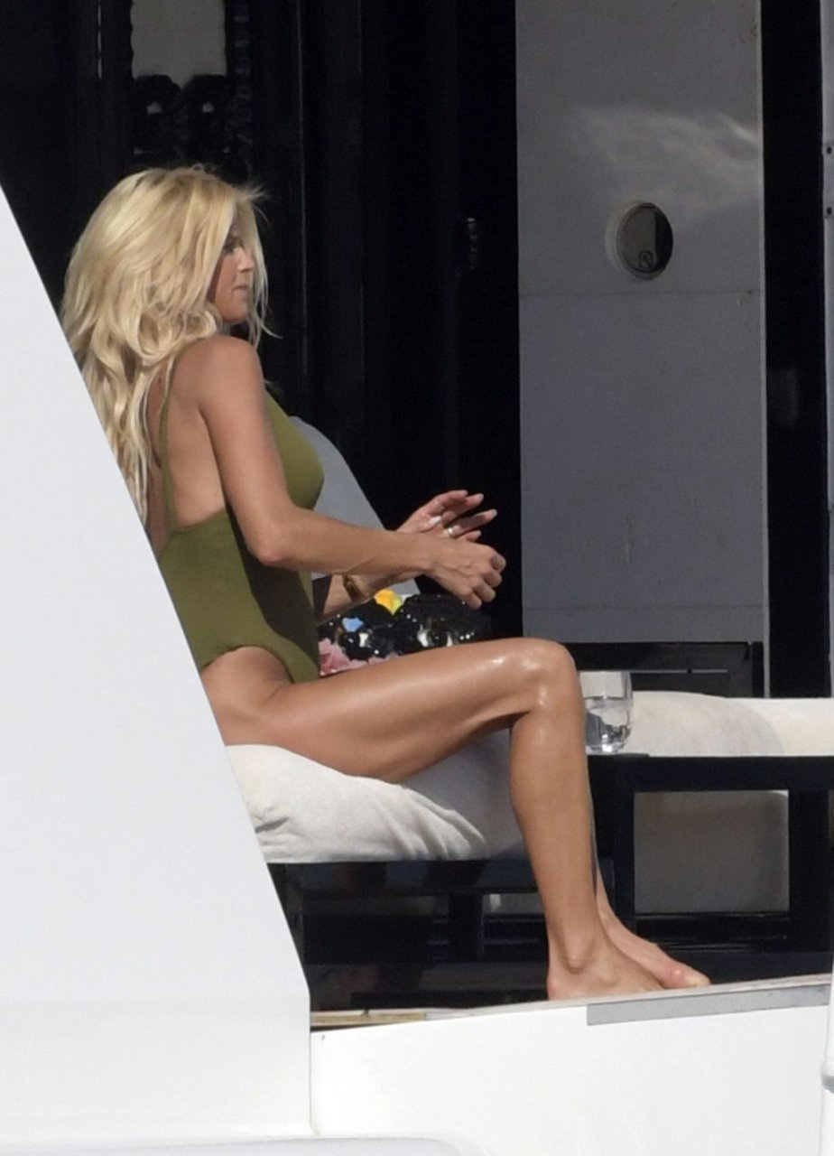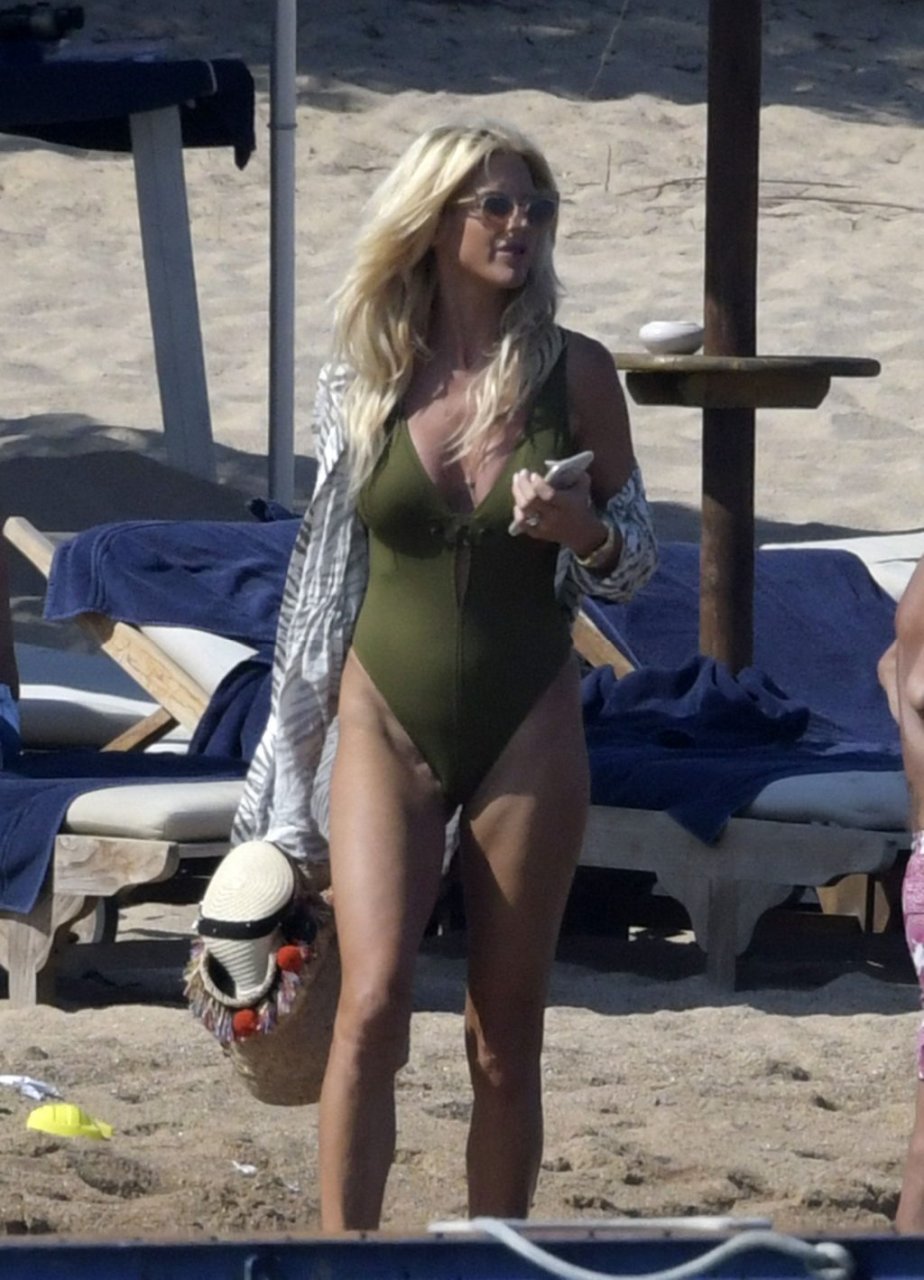 Victoria Silvstedt (43 ans) a été vue portant un maillot de bain vert super sexy sur la plage en Sardaigne, le 08/06/2018. La silhouette de la célébrité est incroyable : longues jambes, ventre plat et seins généreux.