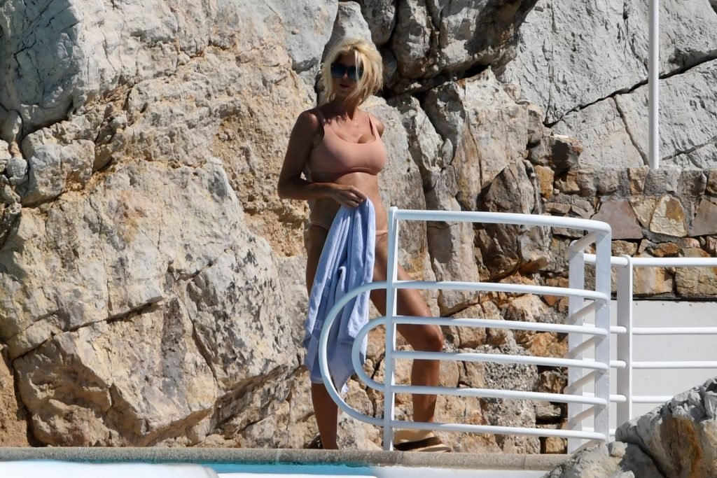 Le mannequin suédois sexy Victoria Silvstedt a été vue en bikini à l’Hôtel du Cap Eden Roc à Antibes, le 15/08/2019.