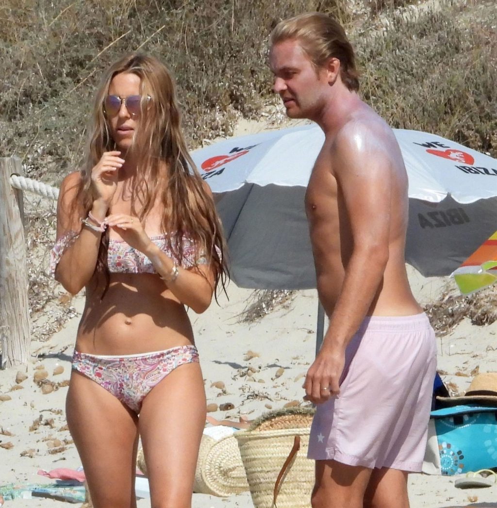 Sous le chaud soleil espagnol qui brille sur Rosberg, Nico semble heureux et détendu avec sa sexy épouse Vivian, qui est ravissante dans son bikini floral minimaliste, tandis que le couple bronze et s’amuse dans la mer avec les enfants et quelques amis.
