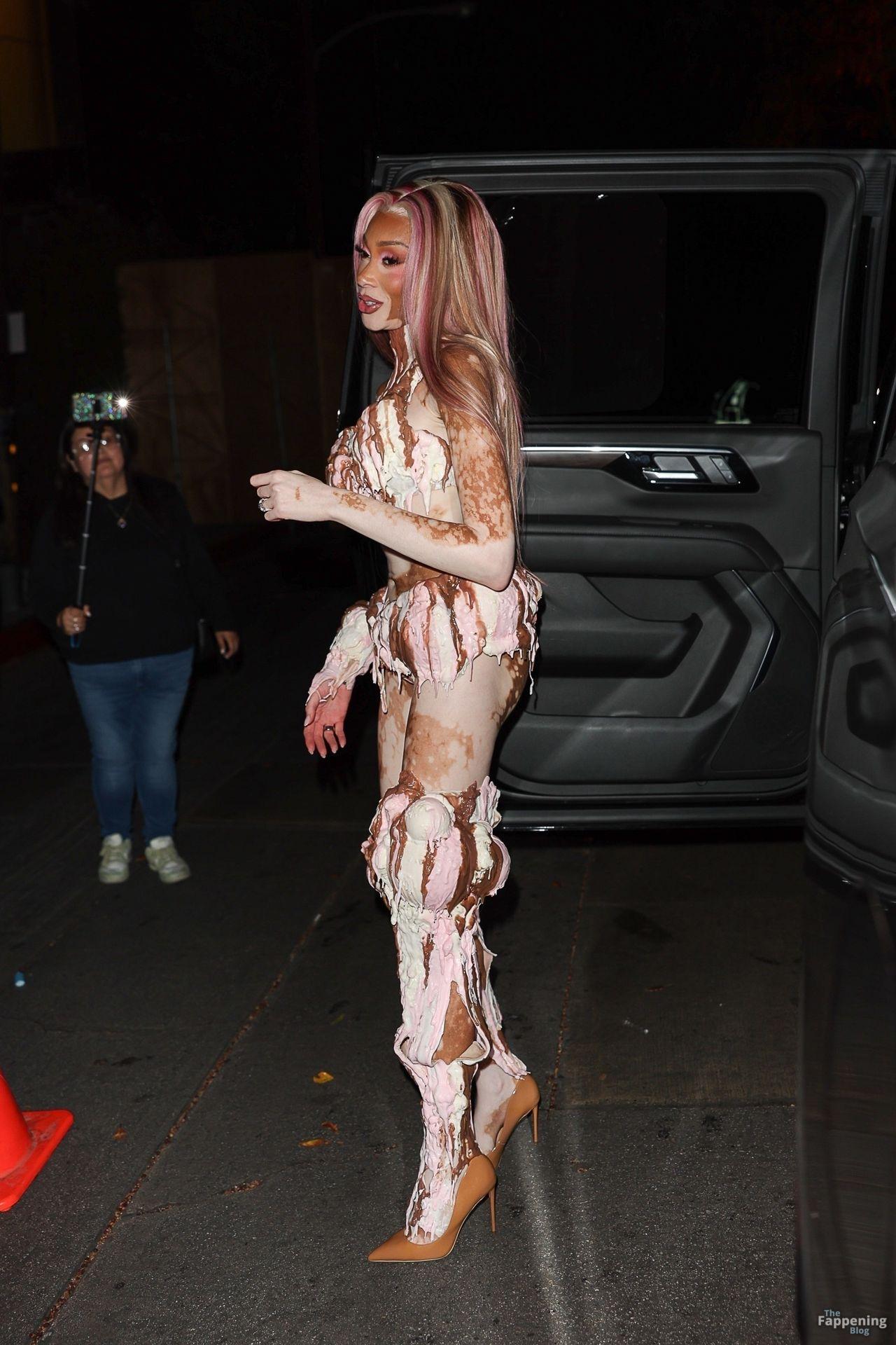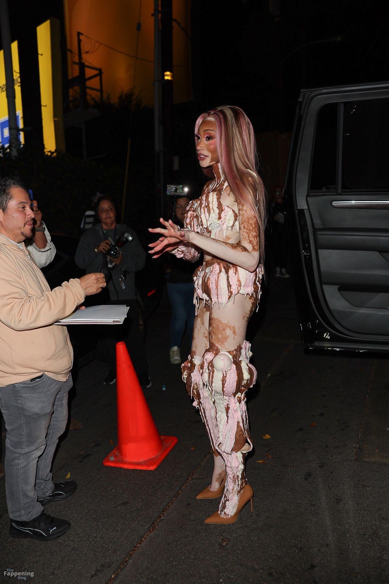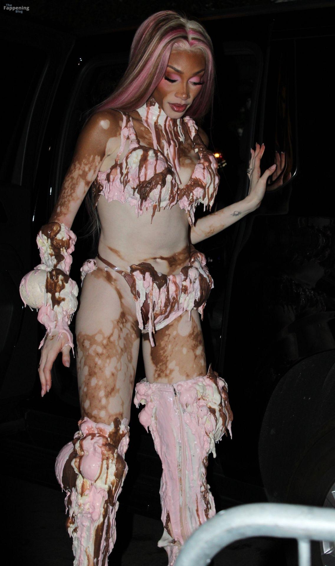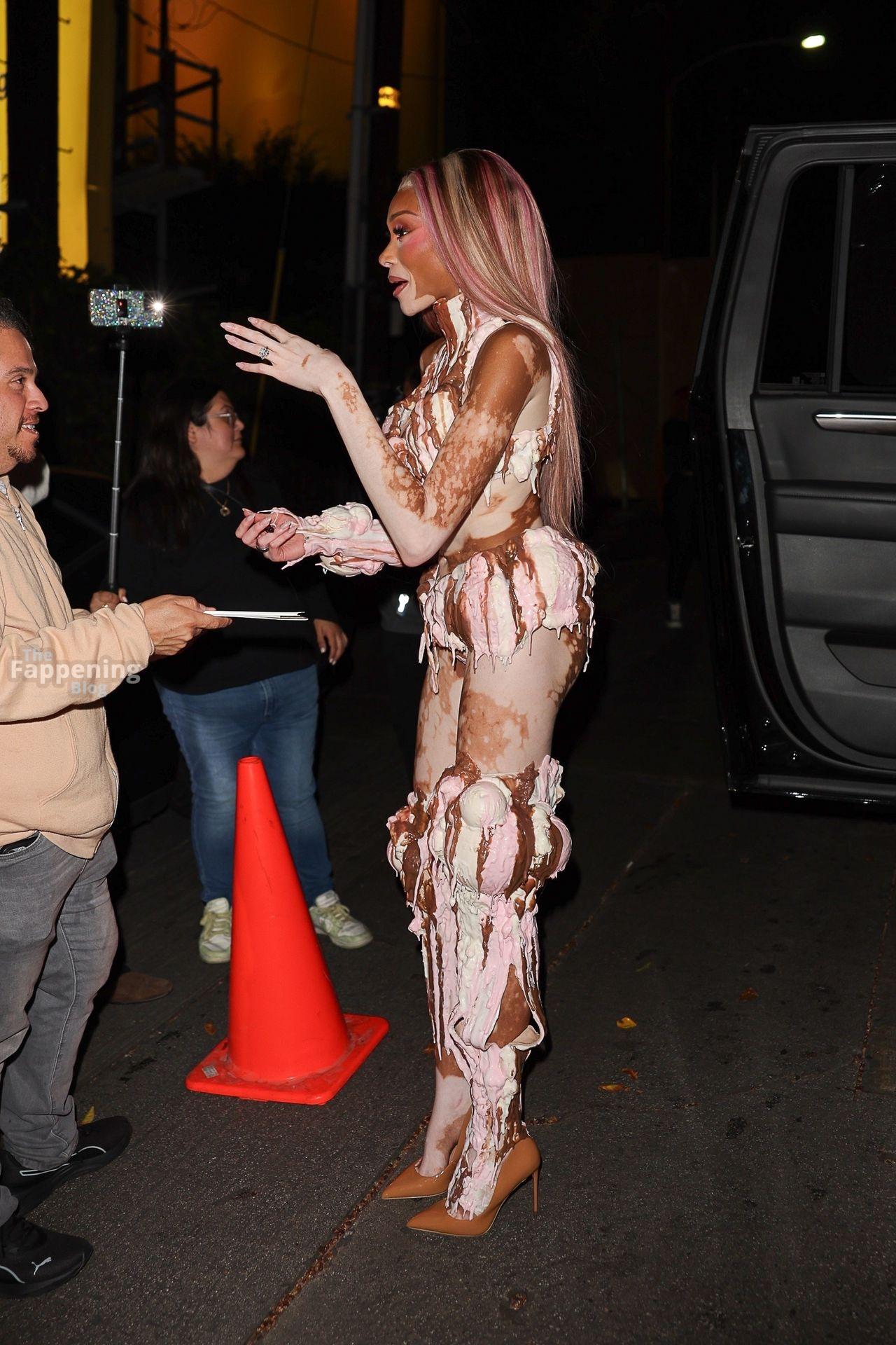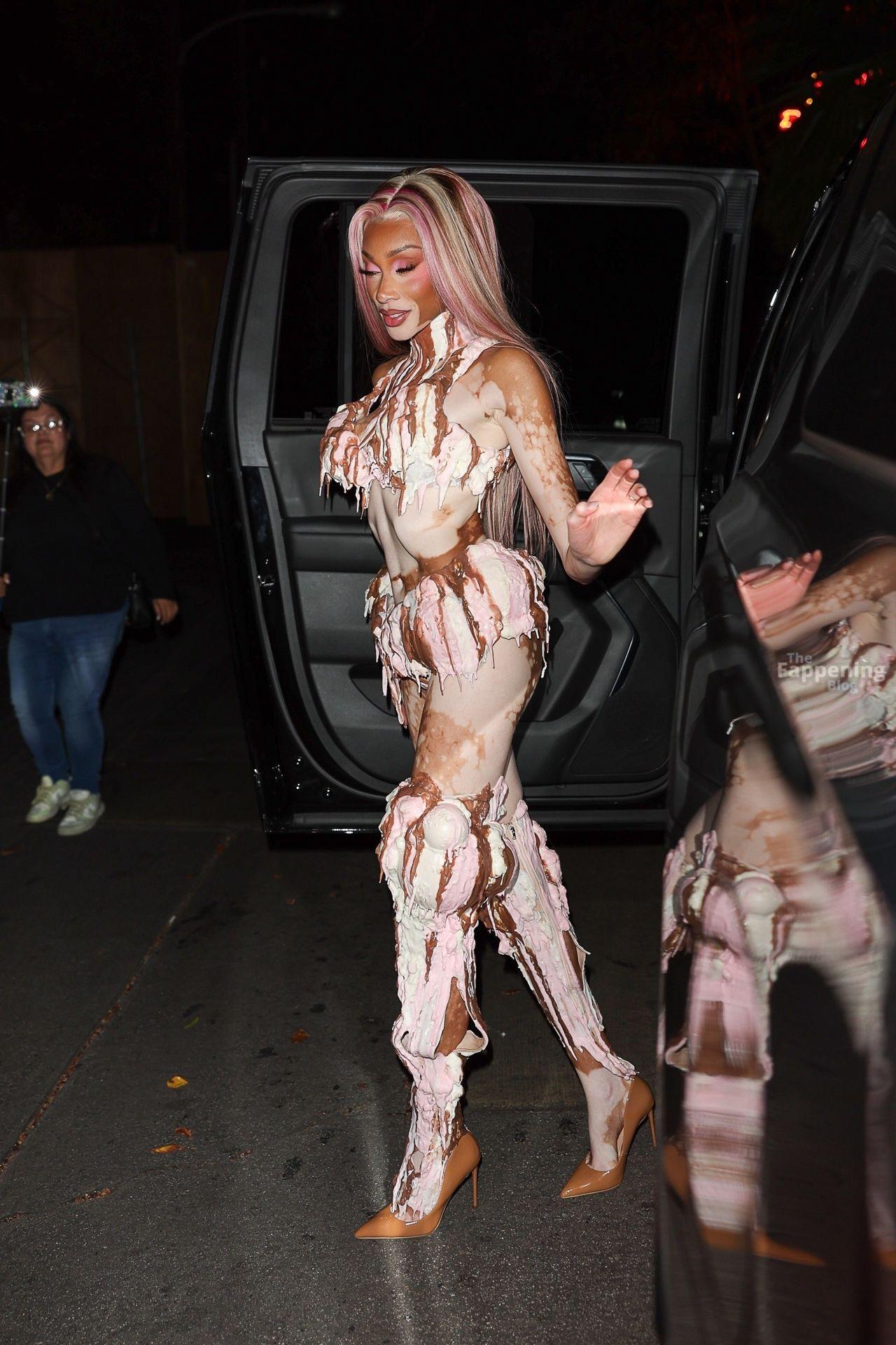 Le mannequin Winnie Harlow est apparue à la grande fête d’Halloween de Vas J Morgan à LA. Découvrez sa tenue glace dans les photos des paparazzis ci-dessous.