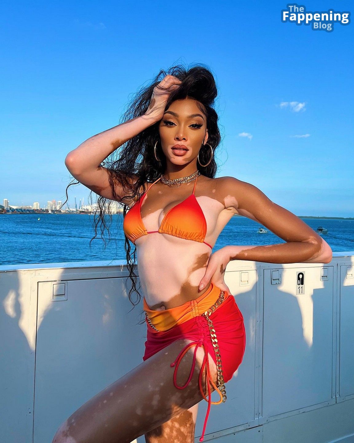 La seule mannequin atteinte de vitiligo qui fait vraiment sensation est Winnie Harlow, et elle a un look carrément étonnant ces jours-ci. Mais c’est ce qui rend son apparence unique encore plus captivante, tu vois ? Quand cette beauté zébrée débarque sur les plages en bikini, tu ne peux pas t’empêcher de la regarder.