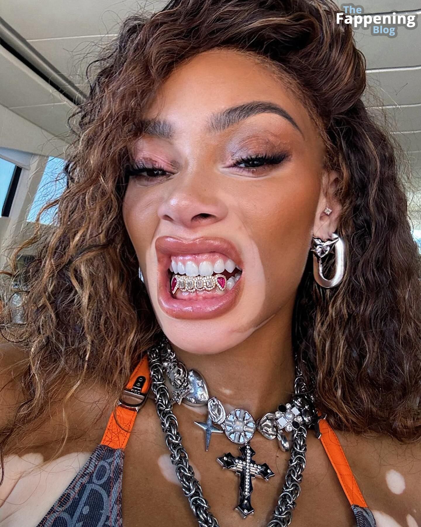 Salut, les amis ! Découvrez ces photos promo surprises de la superbe Winnie Harlow en bikini. Bien sûr, on a déjà vu ce mannequin briller en maillot de bain, mais cette fois, elle représente sa propre marque de maquillage et de crème solaire, Cay Skin. Winnie est super populaire, c’est clair. Elle a toujours ce corps de rêve qui l’a rendue célèbre.