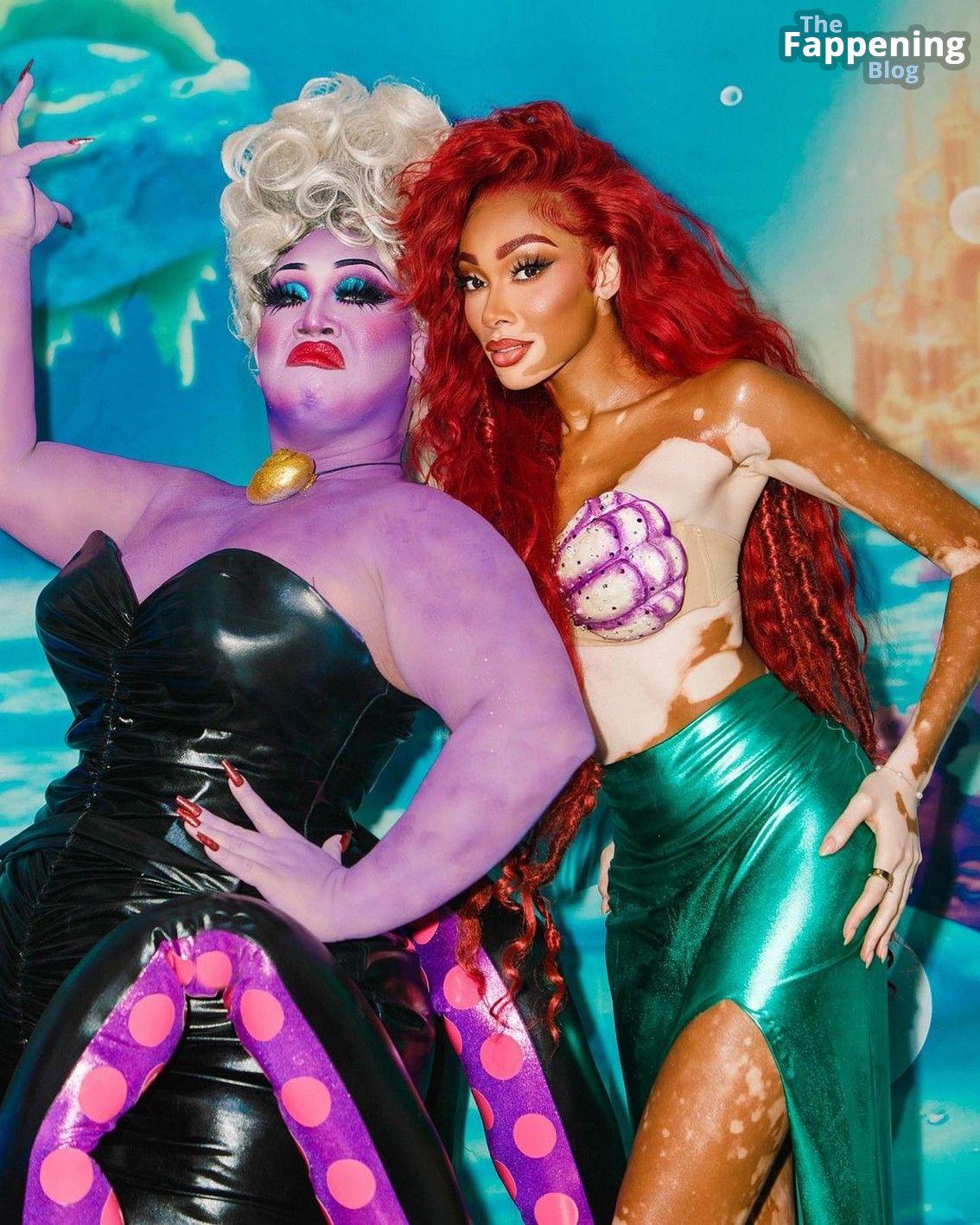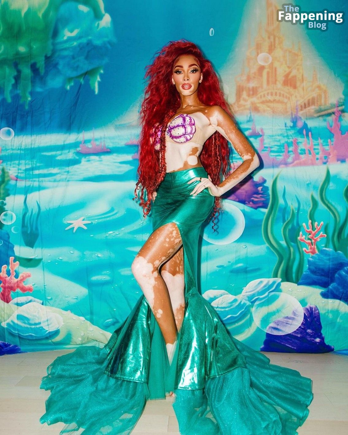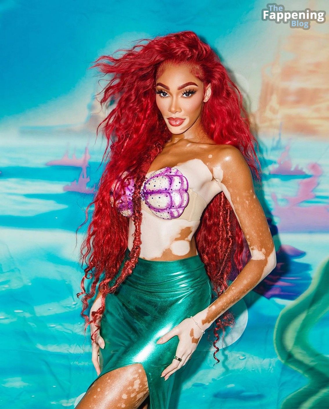 Regardez – Winnie Harlow déguisée en petite sirène et même posant avec un jouet Sebastian ! Sérieusement – elle déchire complètement et ferait une meilleure petite sirène que Halle Bailey, qui ne nous a même pas montré une seule photo en tenue de sirène.