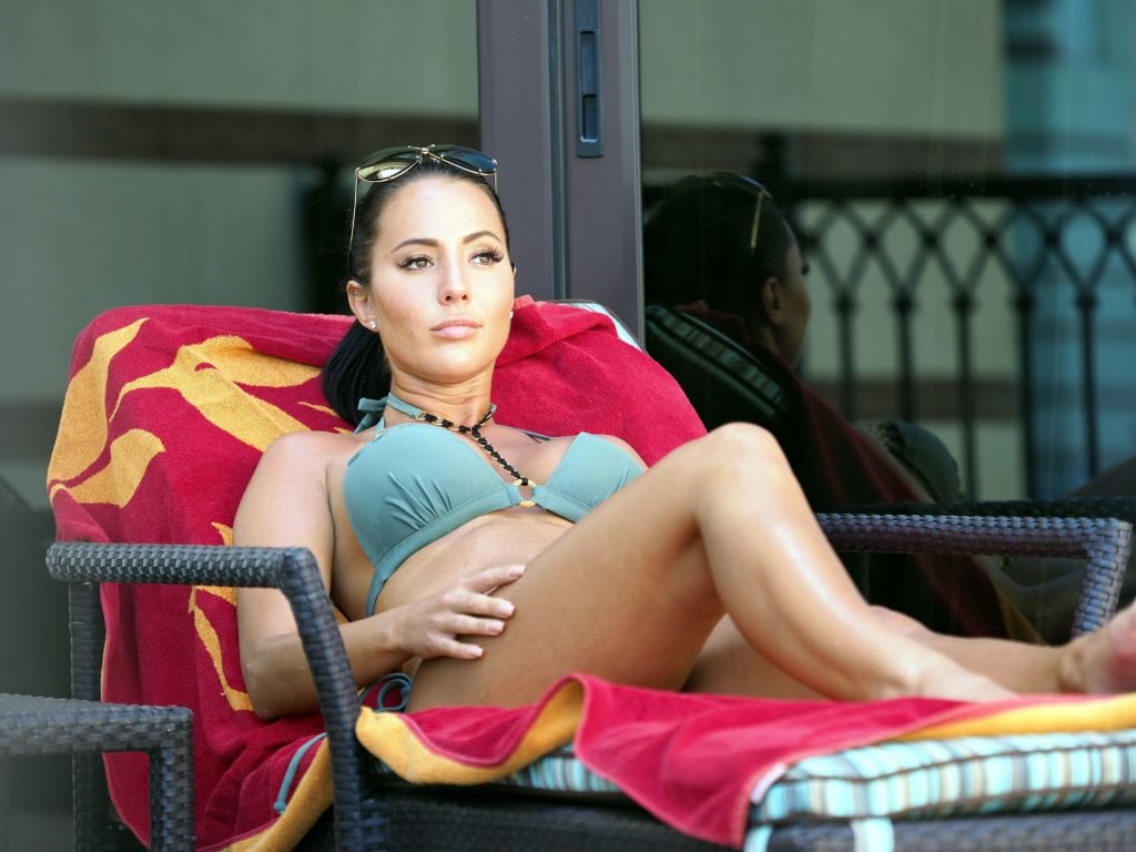 Yazmin Oukhellou est vue en train de profiter du soleil lors de ses vacances à Dubaï, 22/03/2019. La star de TOWIE avait l’air sensationnelle dans un bikini deux pièces vert alors qu’elle se détendait au bord de la piscine de l’hôtel 5* Jumeirah Zabeel Saray.