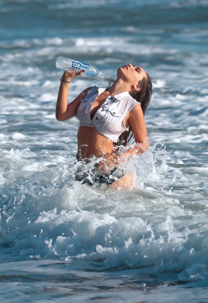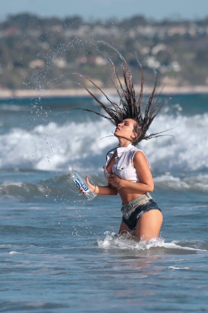 Yenitza Munoz affiche ses looks sexy sur le tournage d’une séance photo chaude 138 Water à Malibu, le 15/02/2016. Beaucoup d’eau ! Yenitza Munoz est un mannequin et actrice américaine.