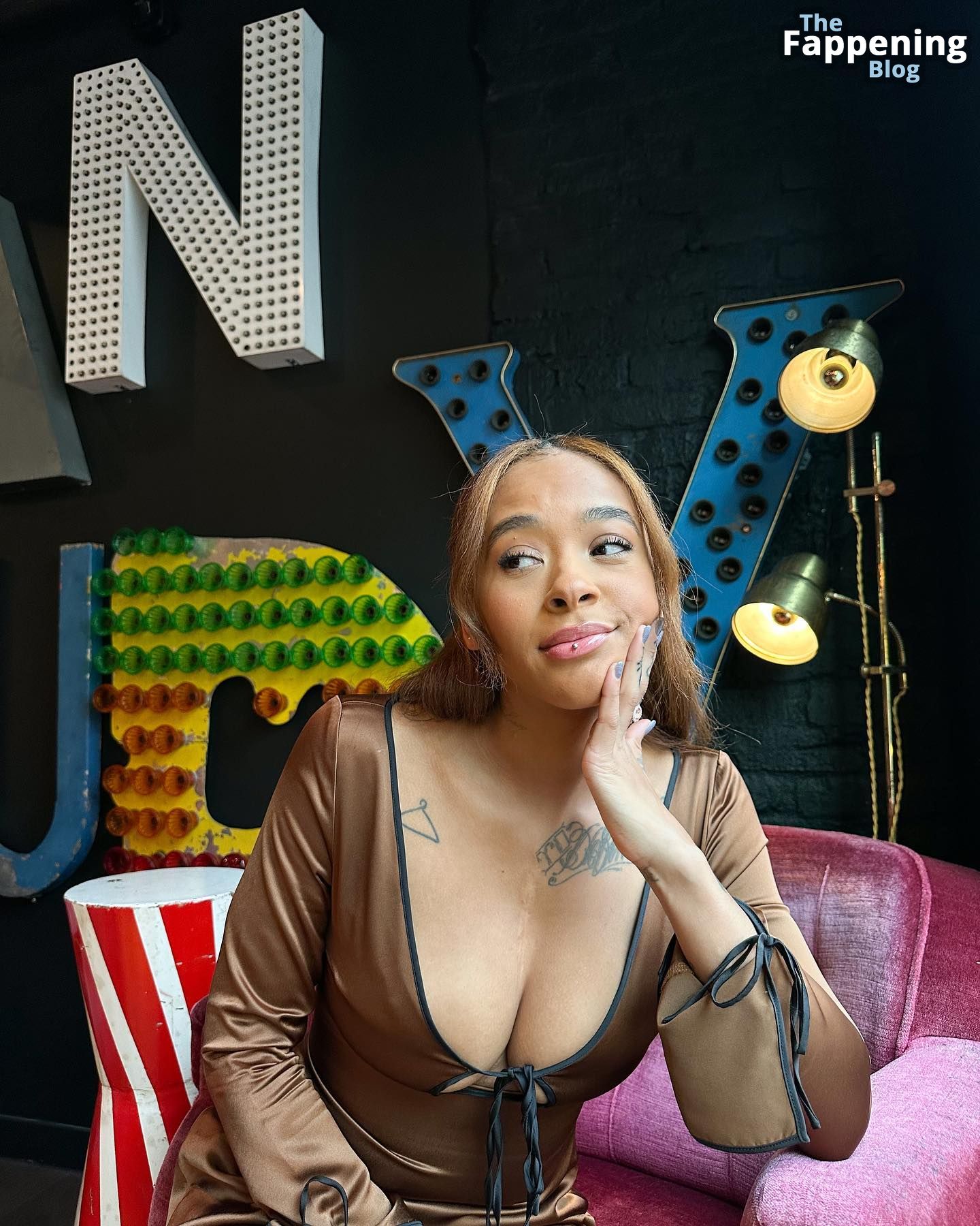 Yinka Bokinni exhibe sa silhouette éblouissante dans des tenues révélatrices, y compris des bikinis string, à la fois dans ses photos privées et ses séances photo professionnelles. Son décolleté généreux, ses fesses galbées et son corps tonique sont tous mis en valeur, offrant une collection de photos sexy.
