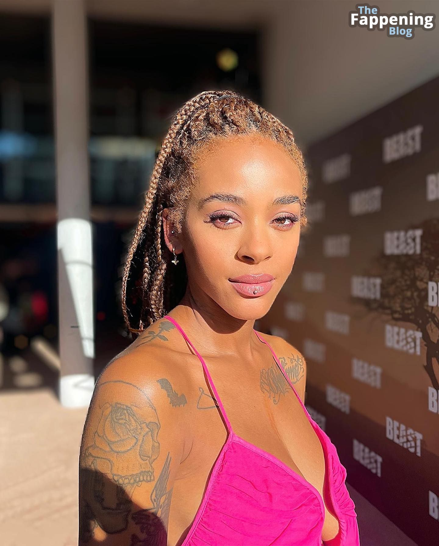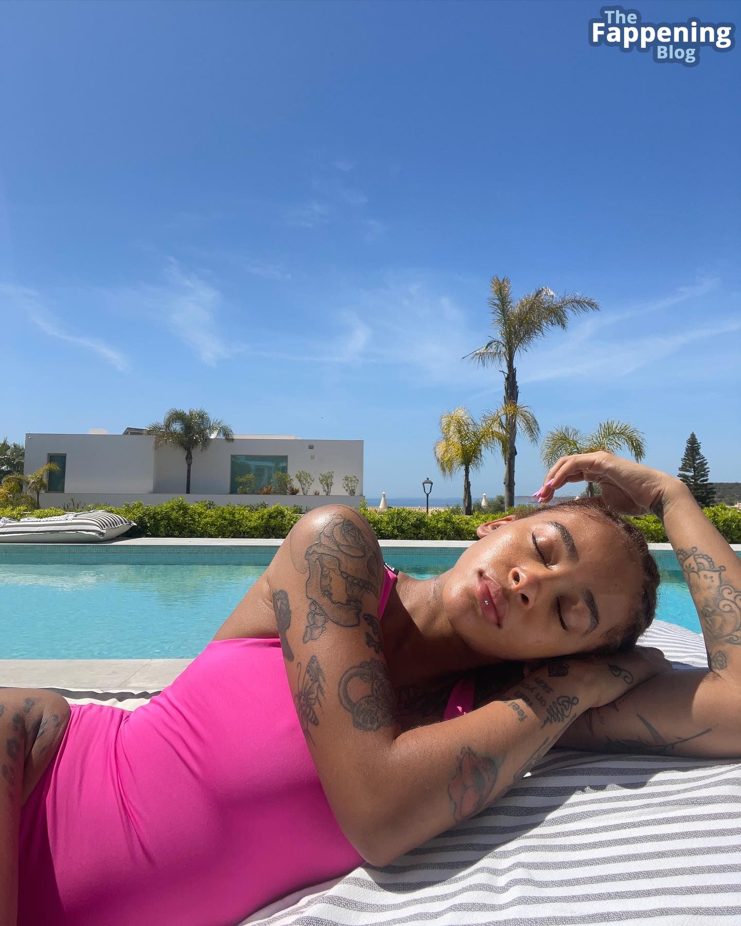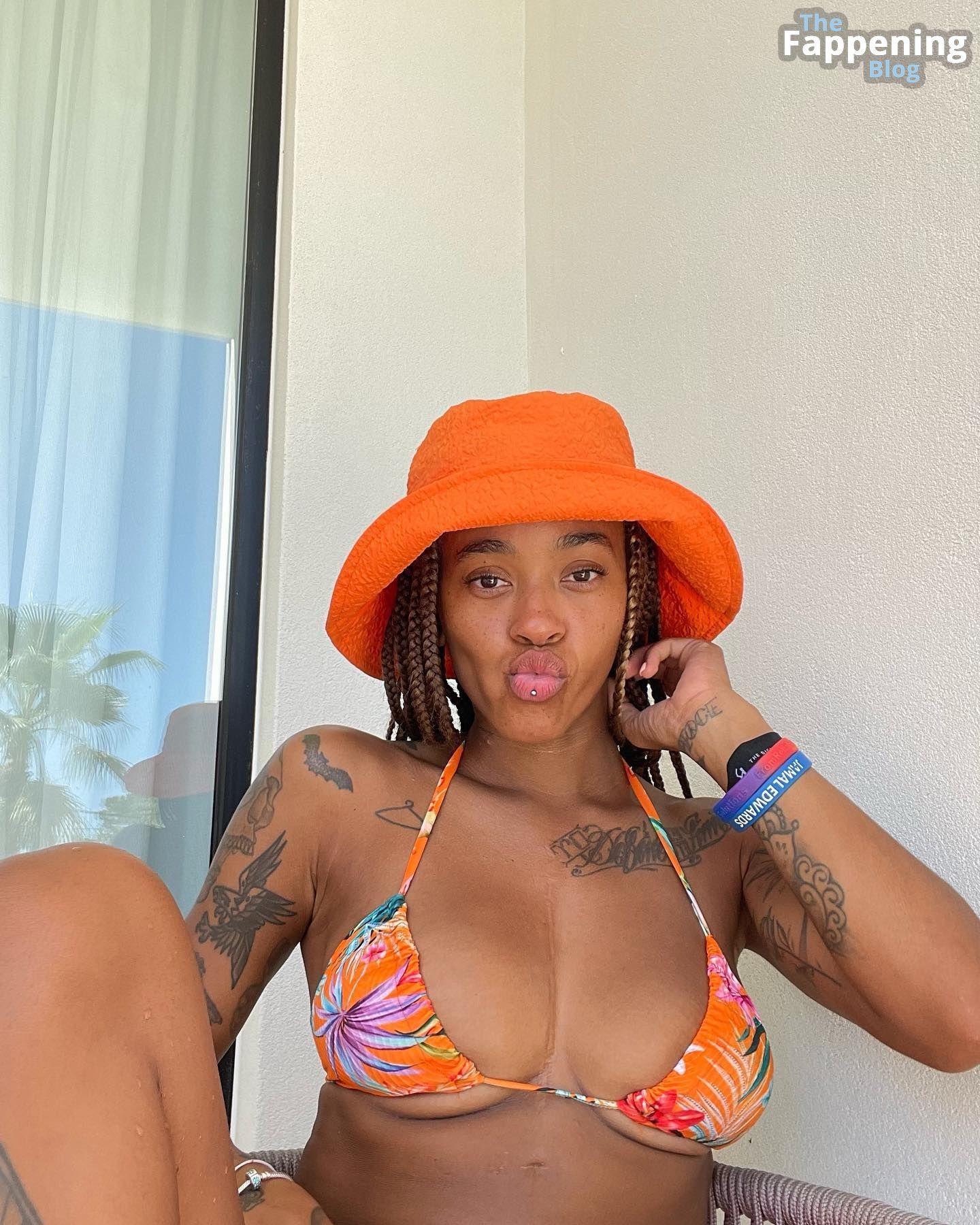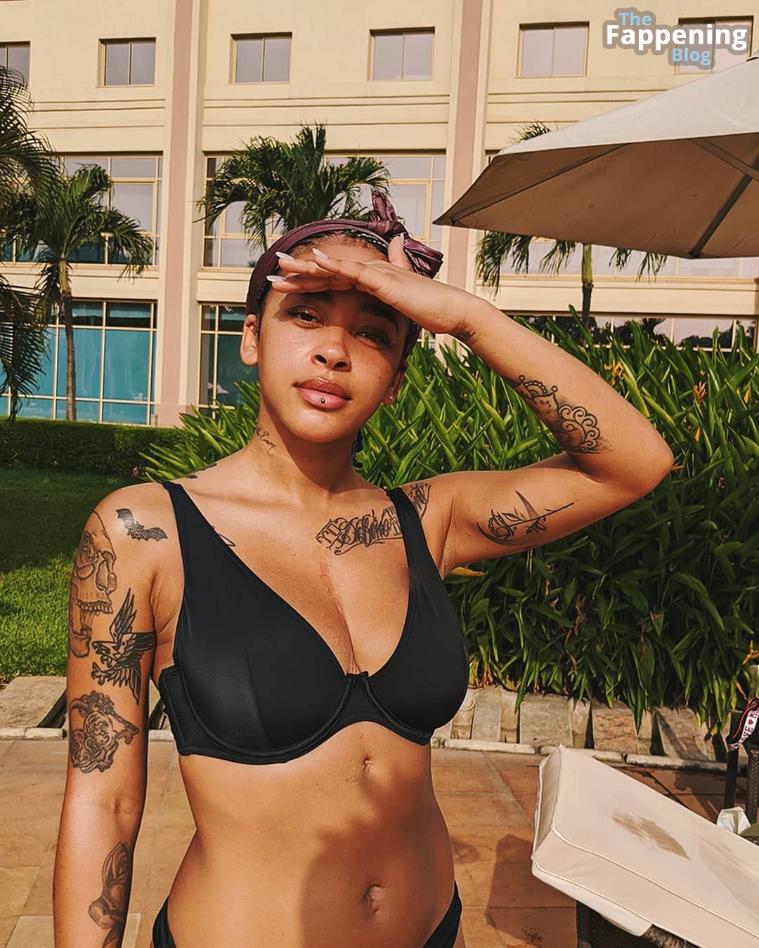 Ouais, la fille a trop de tatouages génériques à mon goût. Et d'où vient la cicatrice entre ses seins ? Ce sont des implants ? Je ne sais pas, le bikini a l'air plutôt correct mais pas assez naturel. Je lui donnerais 4 sur 10, donc pas vraiment attirant.