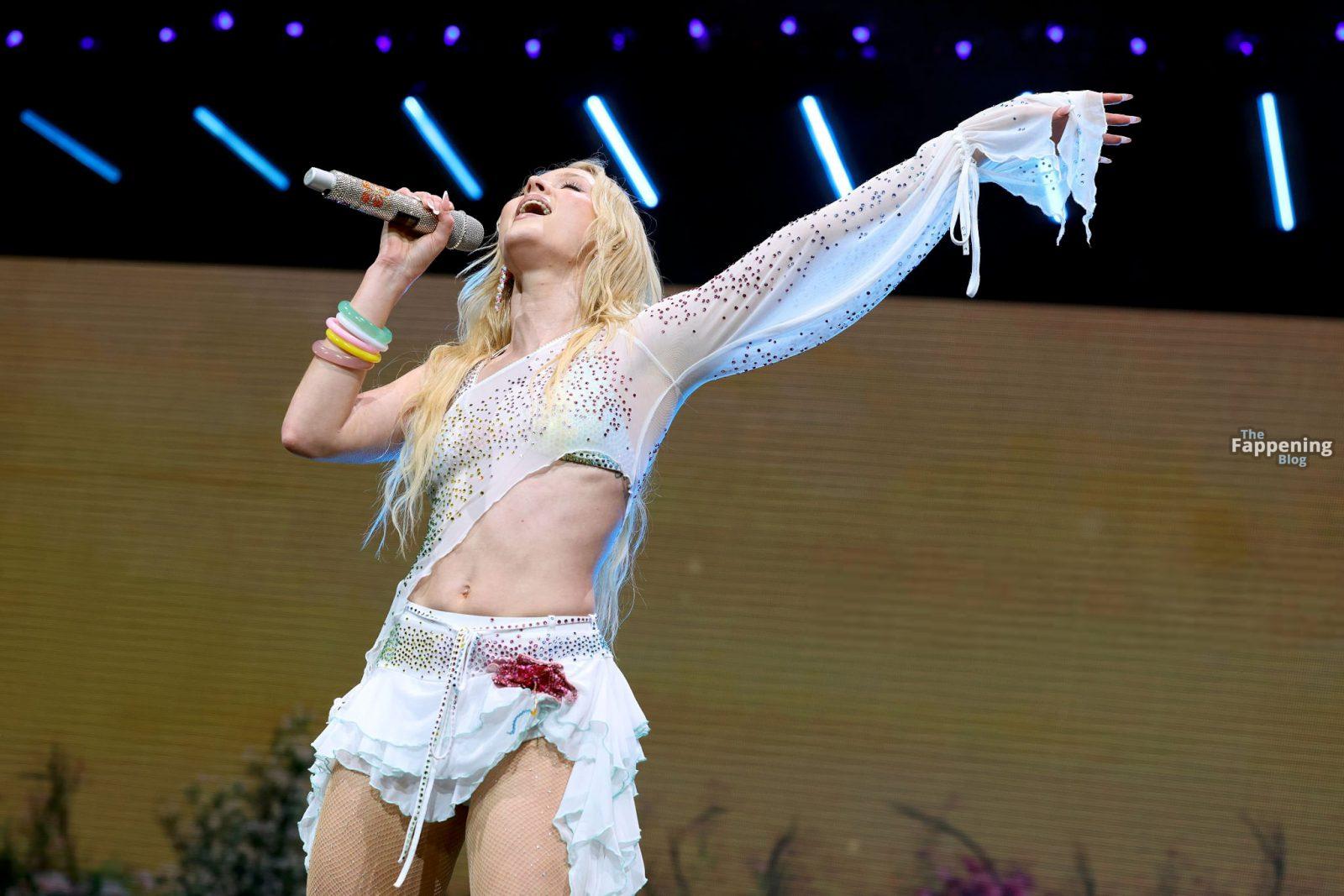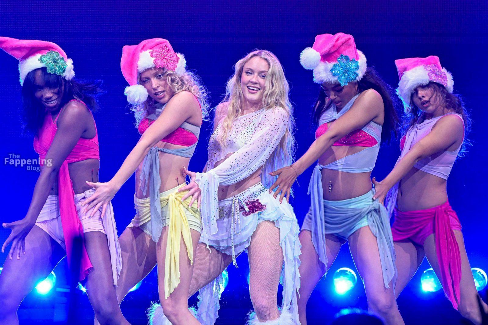 La star du Fappening Zara Larsson exhibe sa silhouette sexy dans une mini robe et un costume transparent au Jingle Ball de Miami.