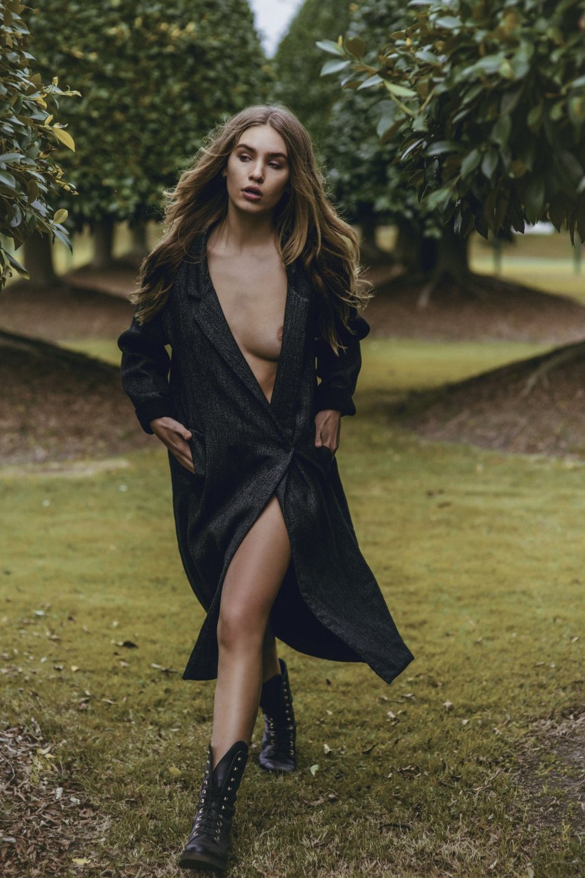 Jeune blonde Zoe Cross pose dans un parc dans une nouvelle séance photo par Nat Lanyon (2016). Zoe Cross est un mannequin d’Australie. Âge : 21 ans (11 août 1995).