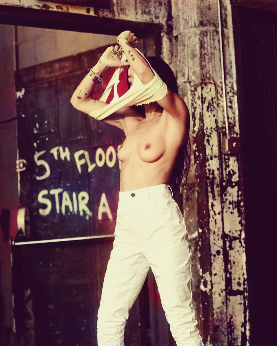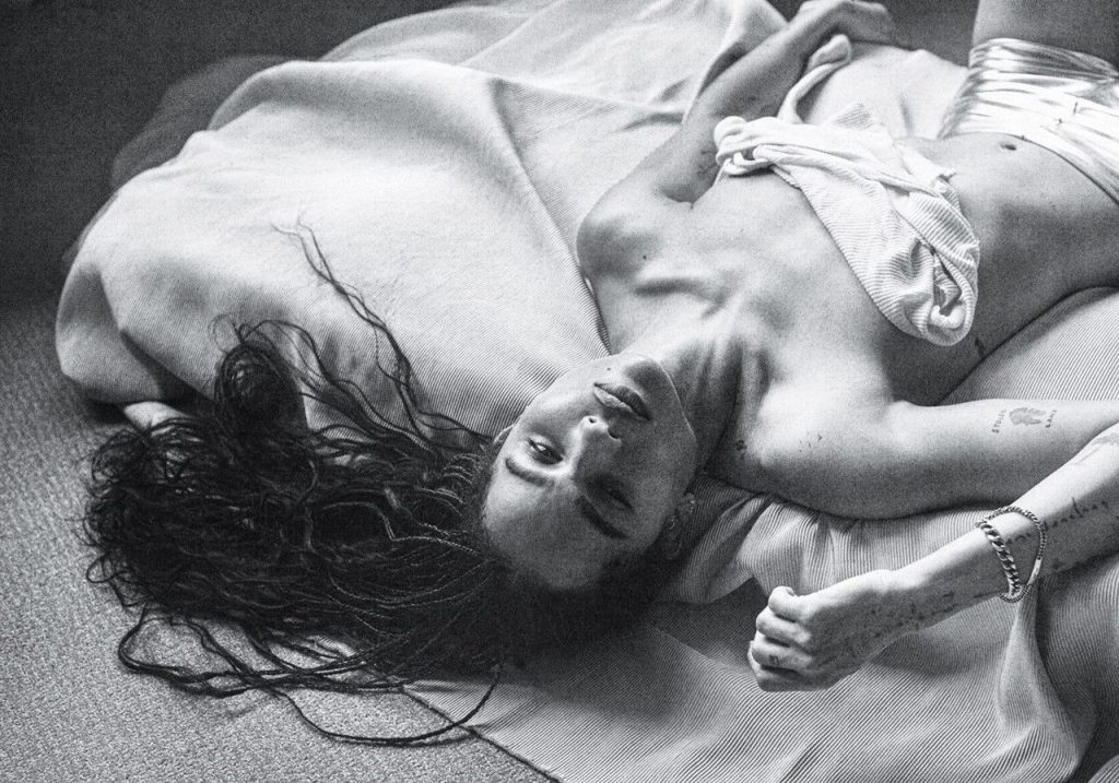 Actrice Zoe Kravitz expose ses seins nus avec un téton percé en posant topless dans une nouvelle séance photo pour le numéro Automne/Hiver 2021 d’AnOther Magazine.