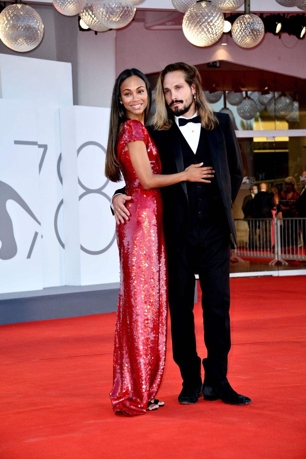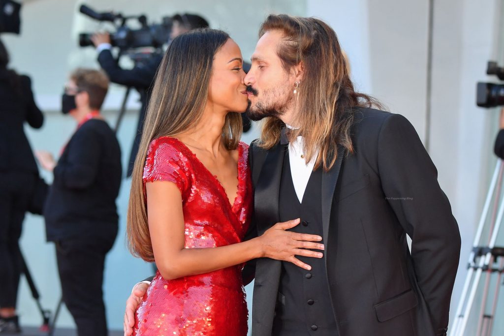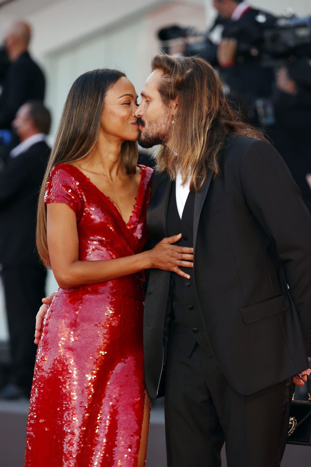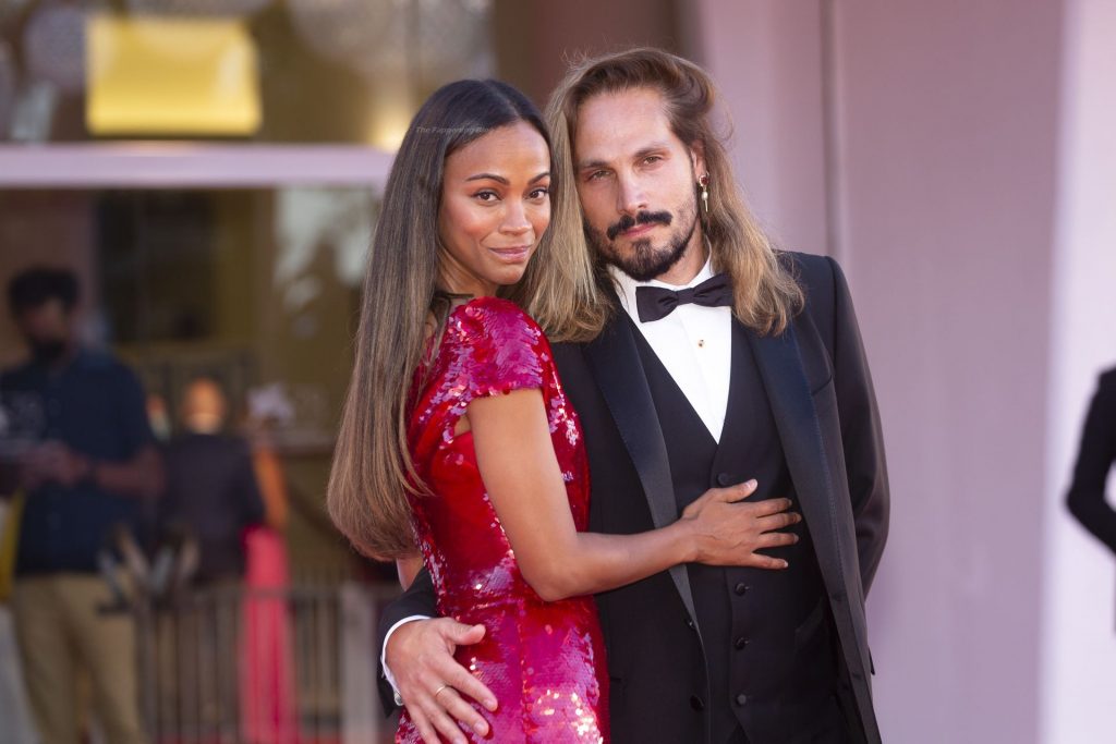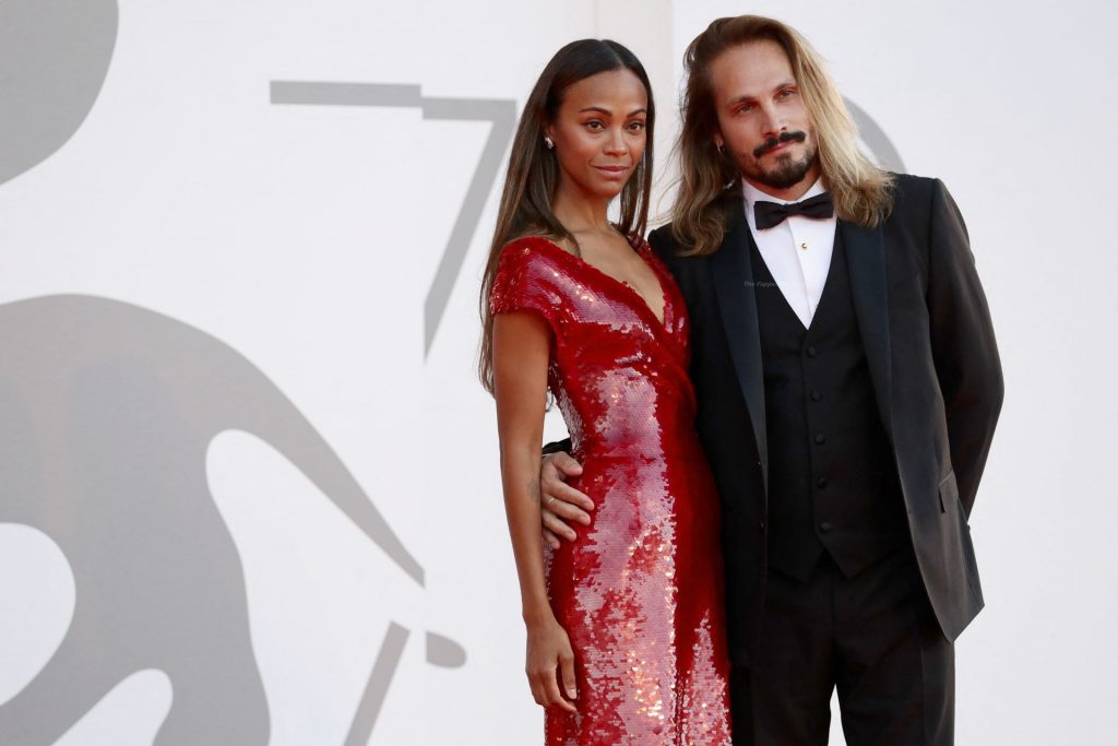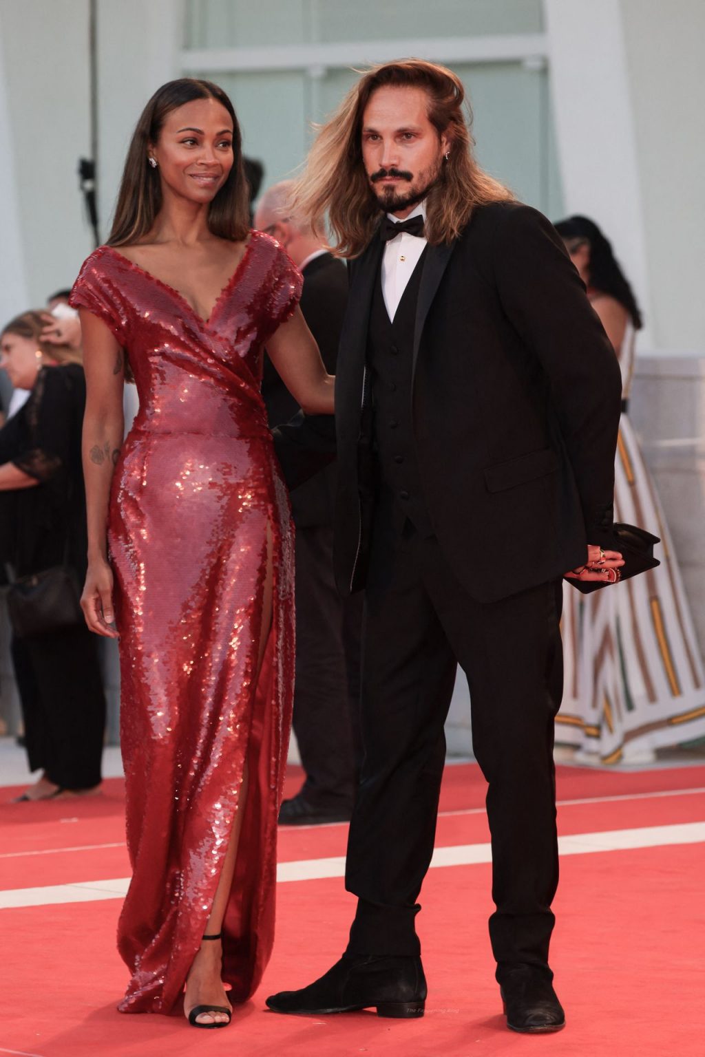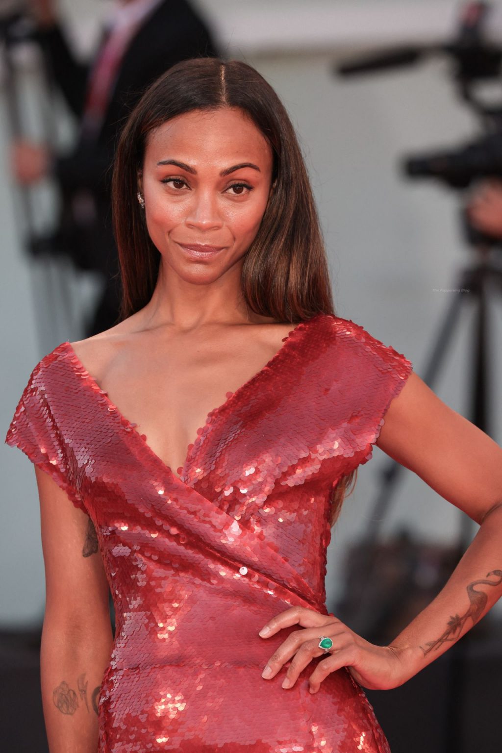 L’actrice américano-dominicaine Zoe Saldana arrive pour la projection du film “E stata la mano di Dio” (La Main de Dieu) présenté en compétition lors du 78e Festival du film de Venise au Lido de Venise, 02/09/2021.