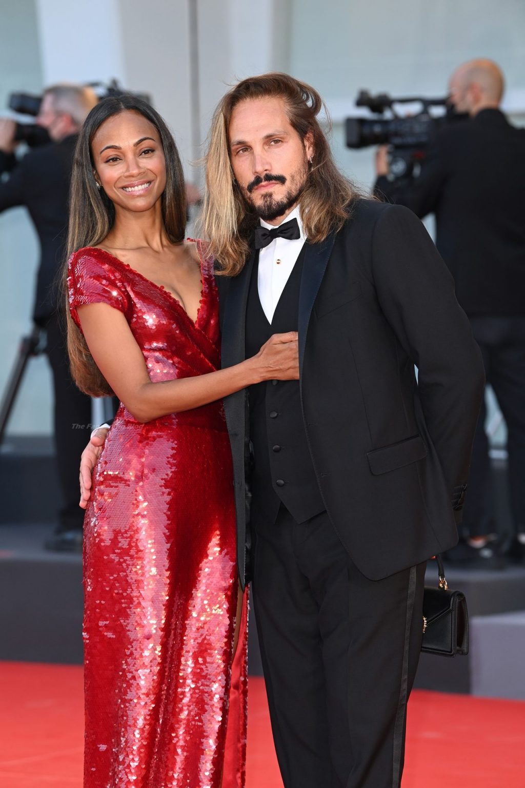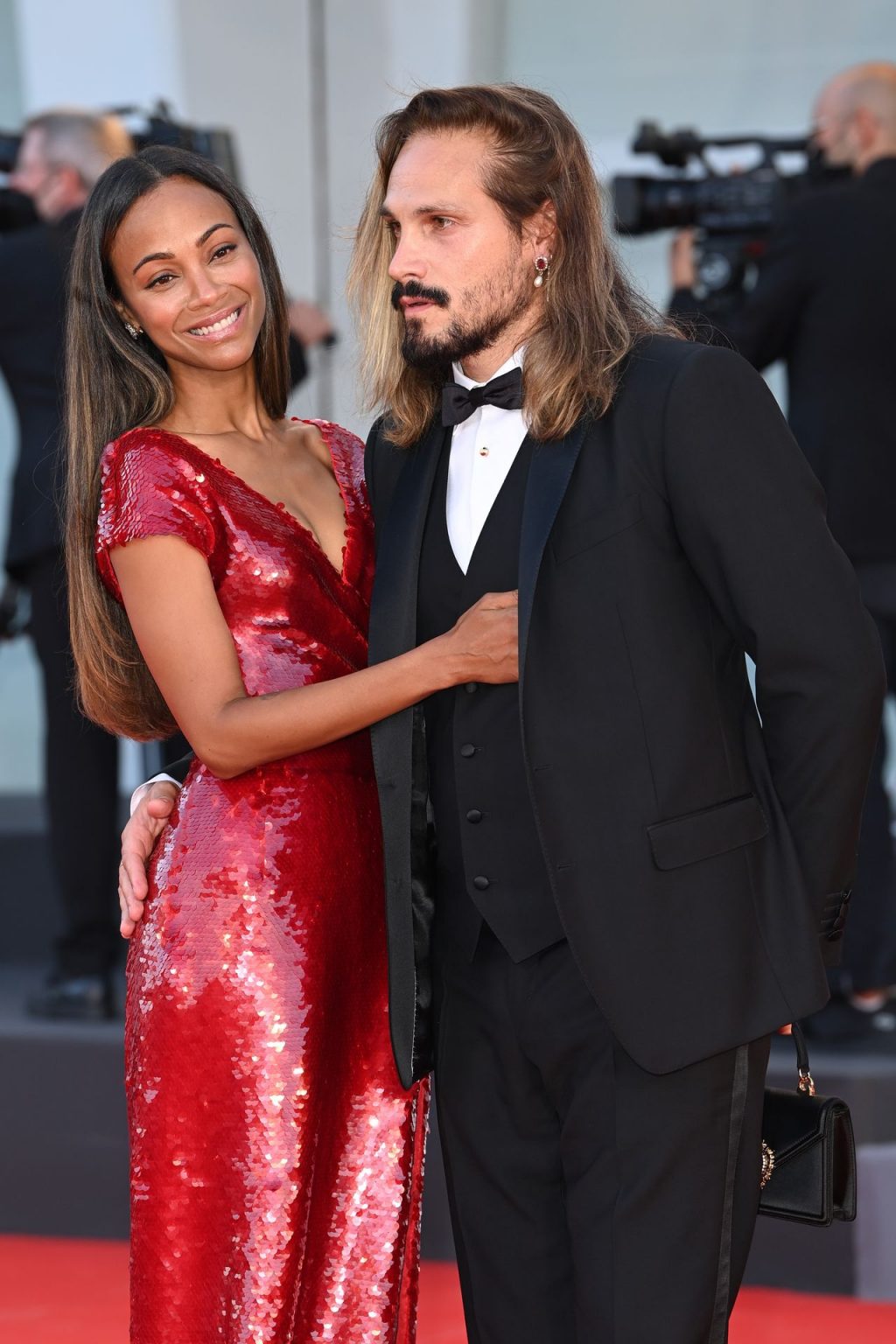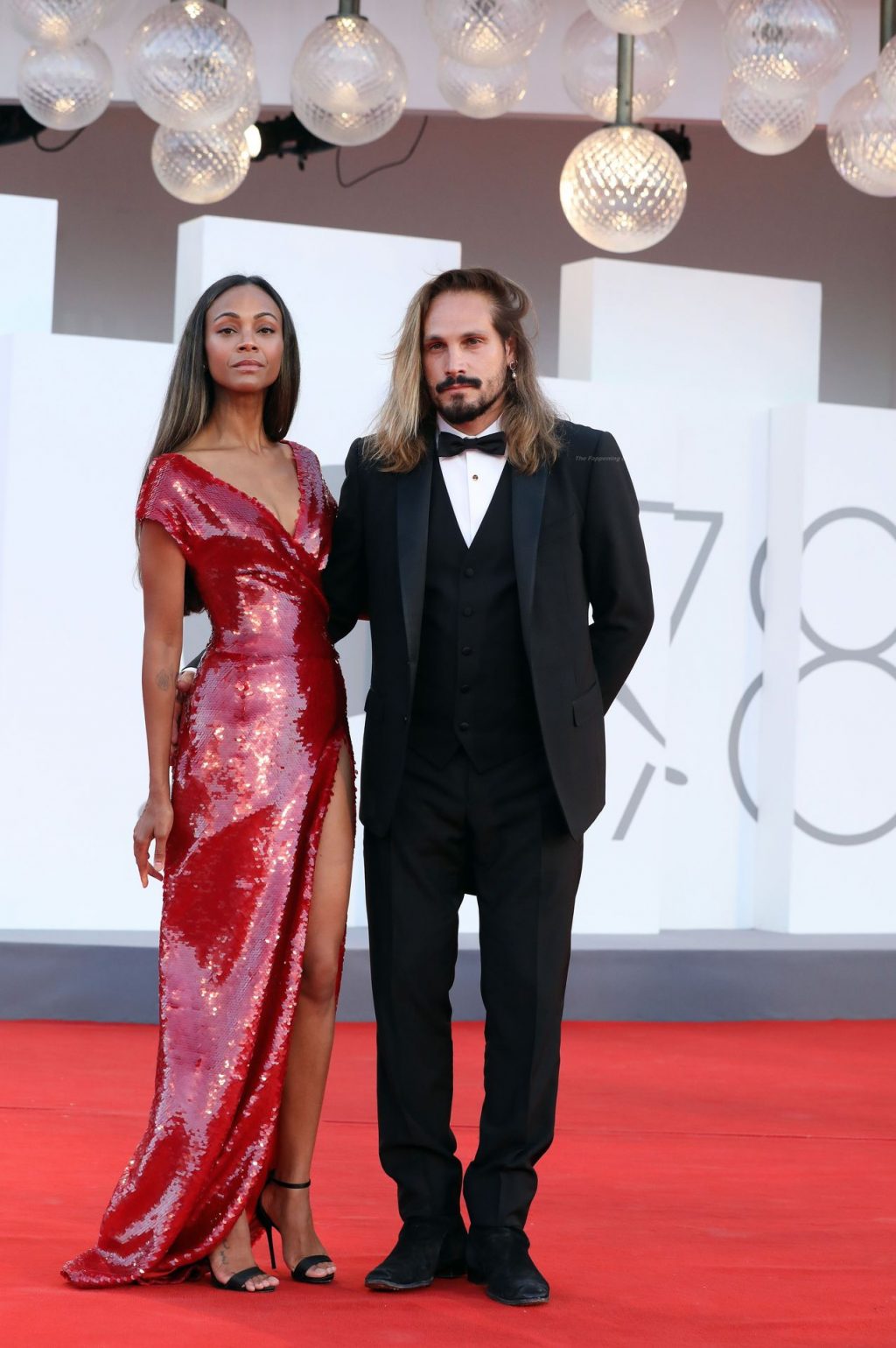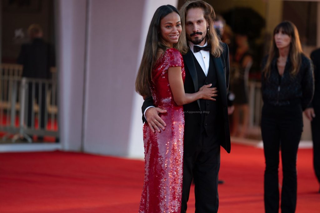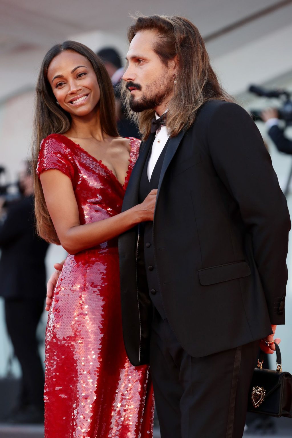 L’actrice américano-dominicaine Zoe Saldana arrive pour la projection du film “E stata la mano di Dio” (La Main de Dieu) présenté en compétition lors du 78e Festival du film de Venise au Lido de Venise, 02/09/2021.