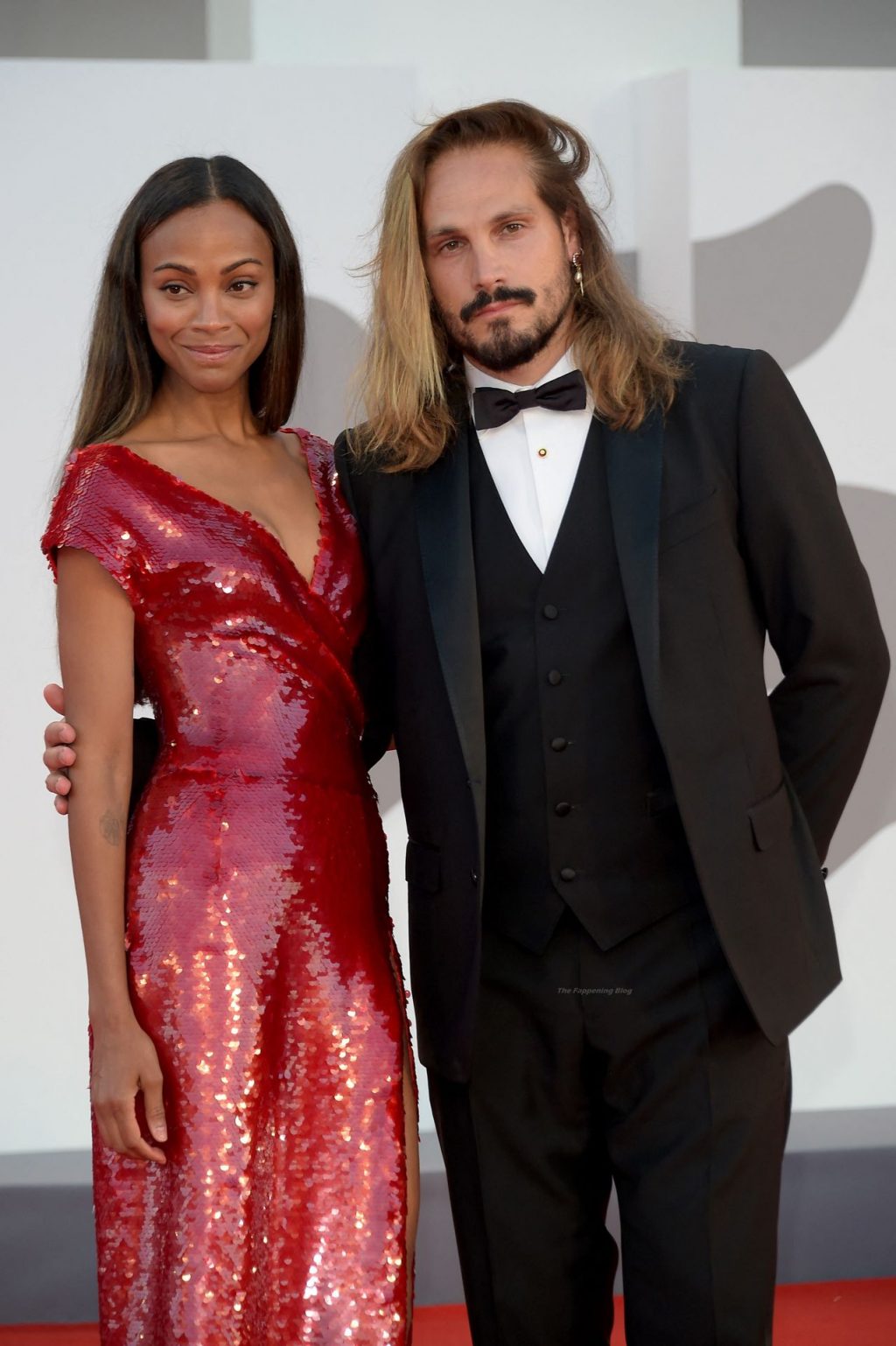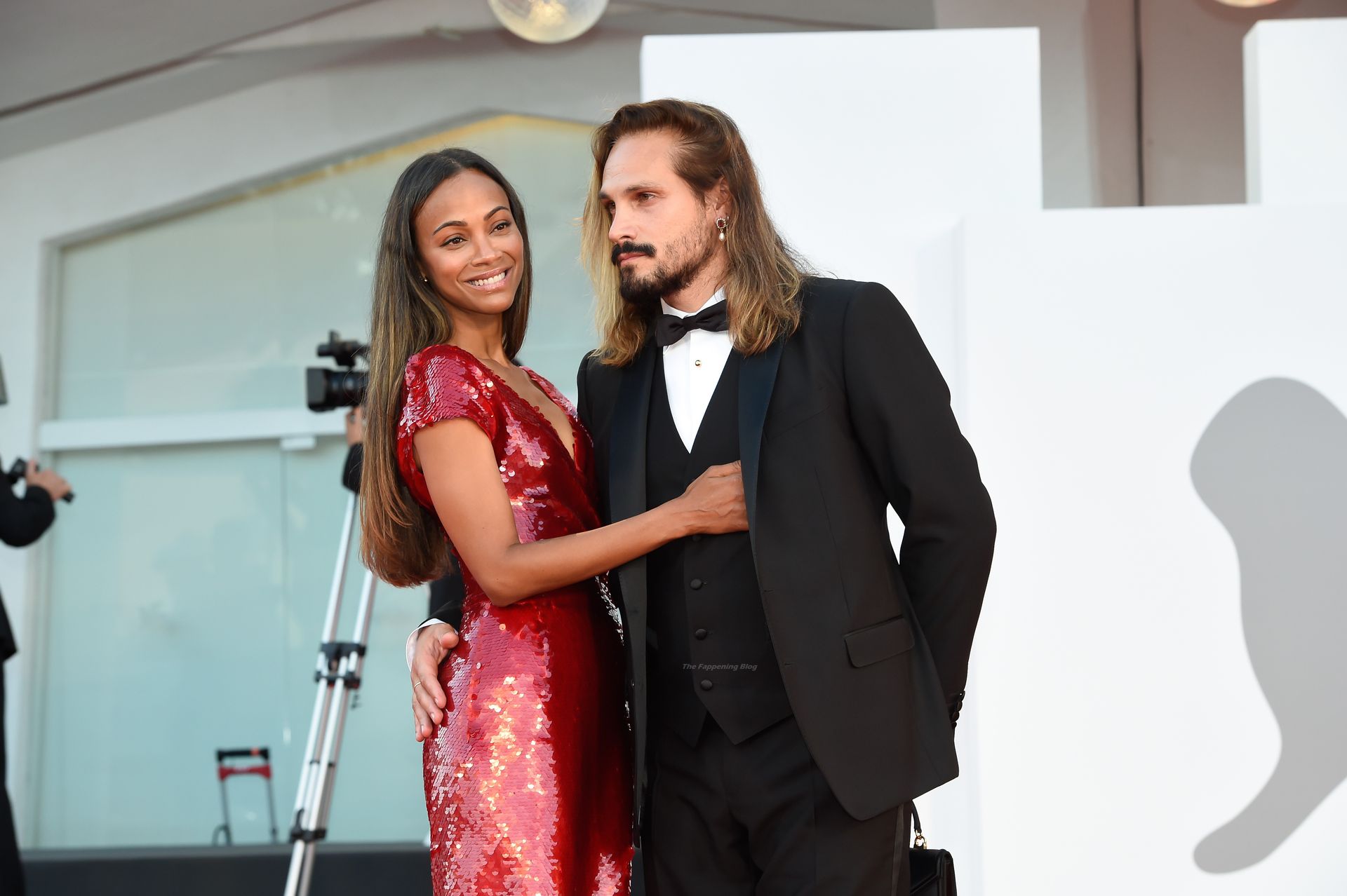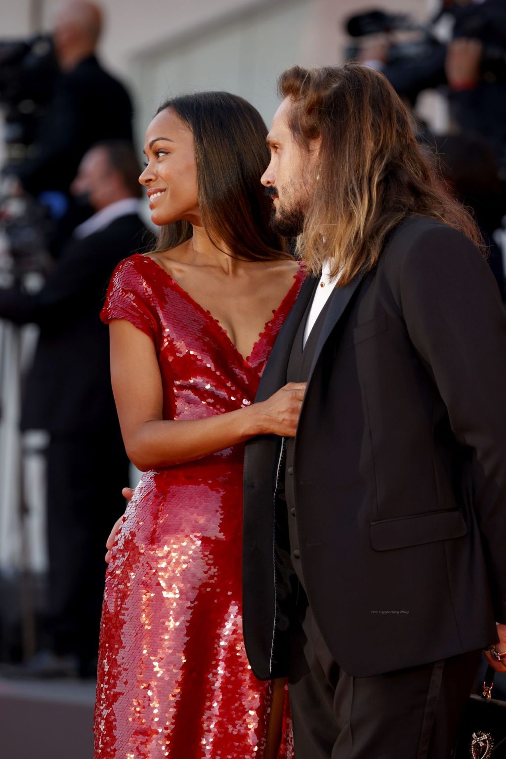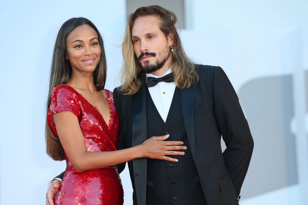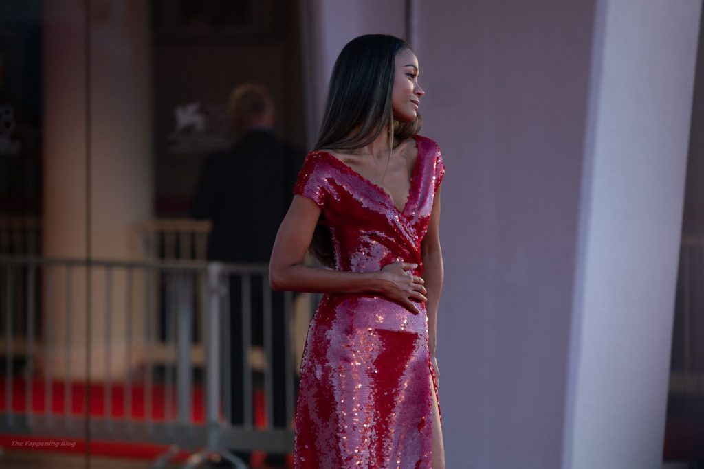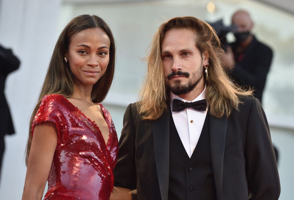L’actrice américano-dominicaine Zoe Saldana arrive pour la projection du film “E stata la mano di Dio” (La Main de Dieu) présenté en compétition lors du 78e Festival du film de Venise au Lido de Venise, 02/09/2021.