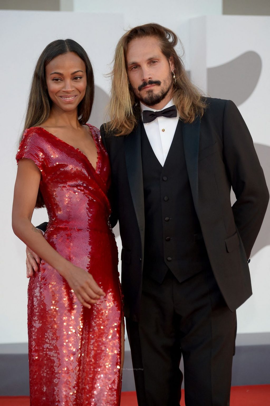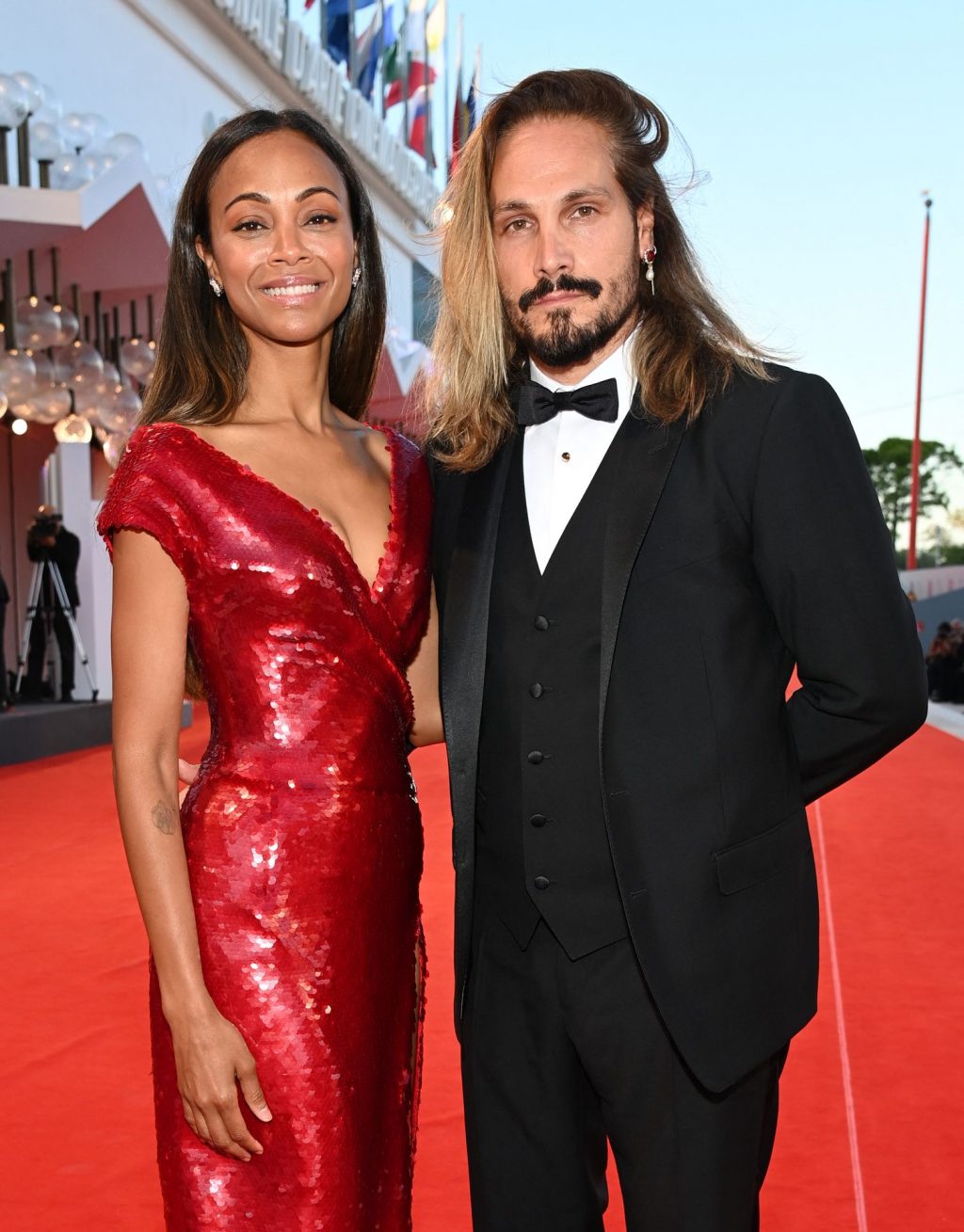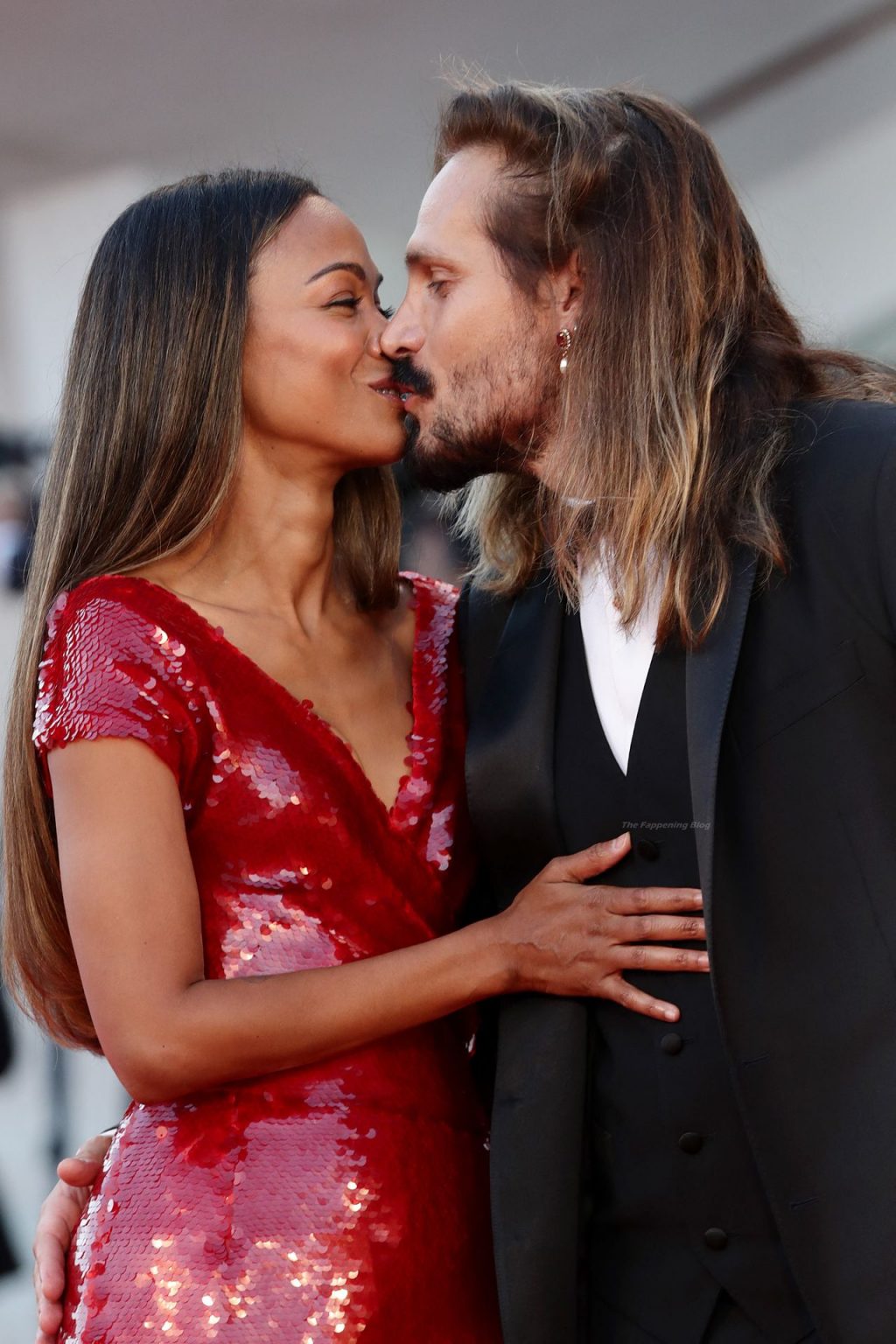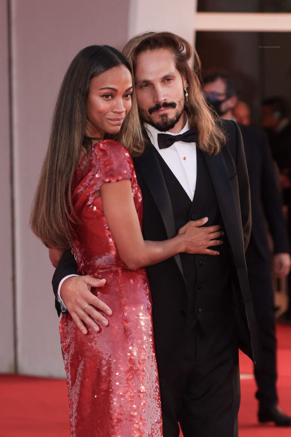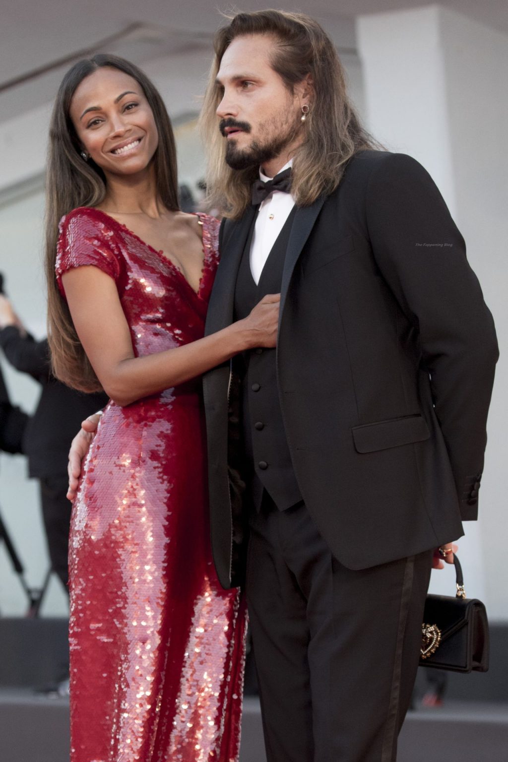 L’actrice américano-dominicaine Zoe Saldana arrive pour la projection du film “E stata la mano di Dio” (La Main de Dieu) présenté en compétition lors du 78e Festival du film de Venise au Lido de Venise, 02/09/2021.
