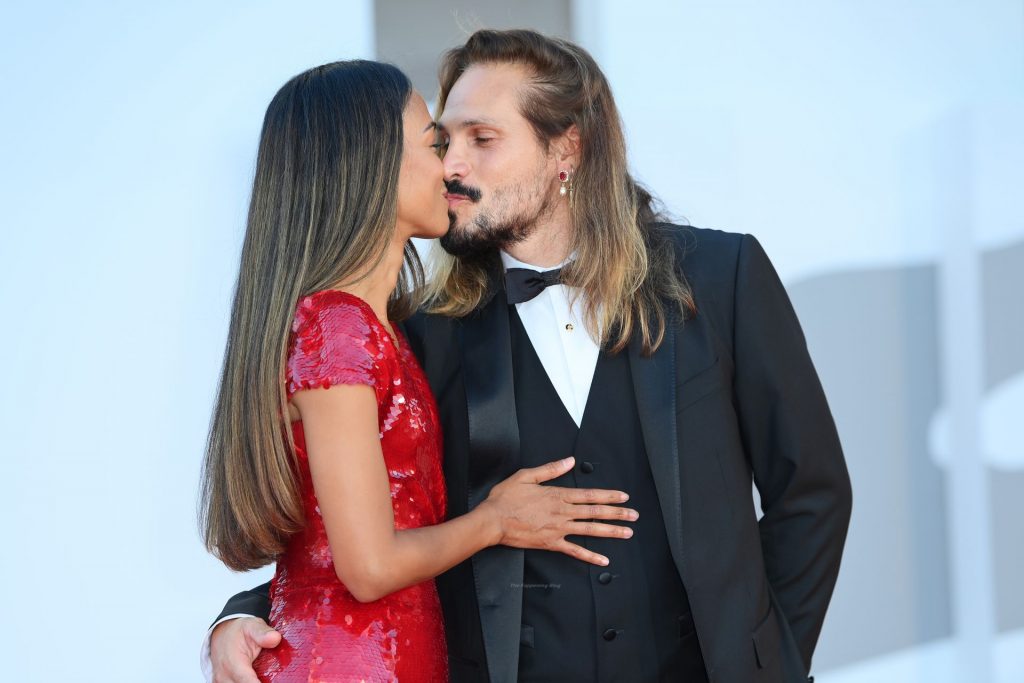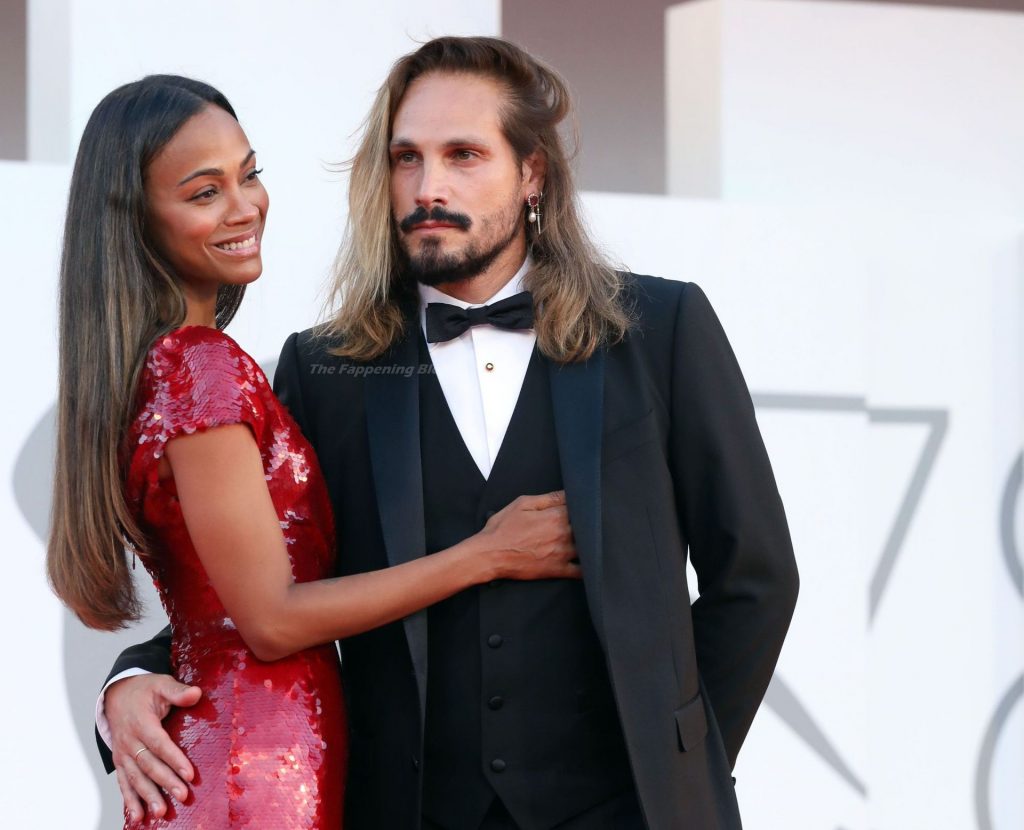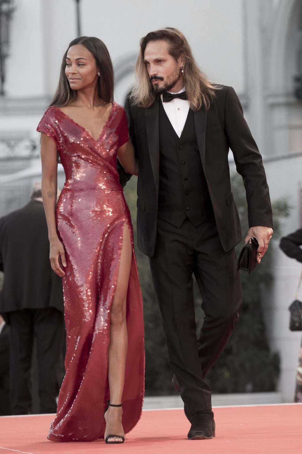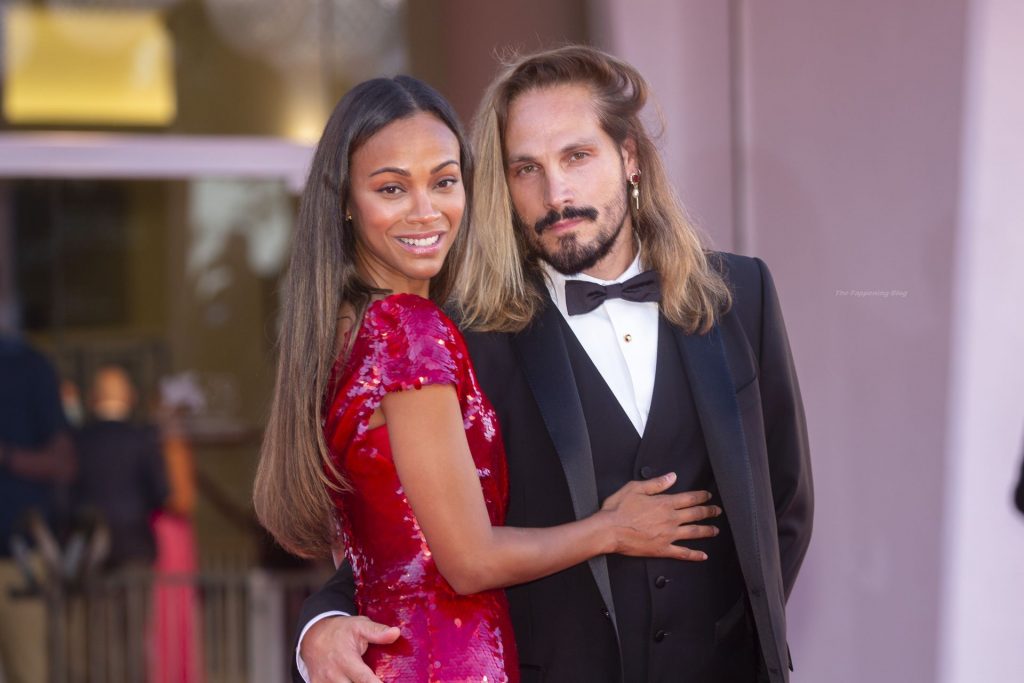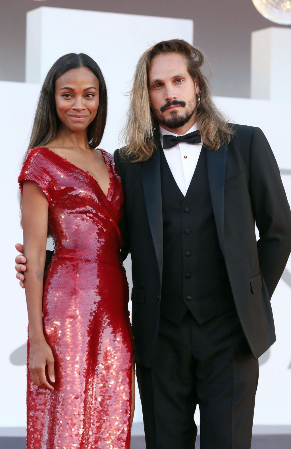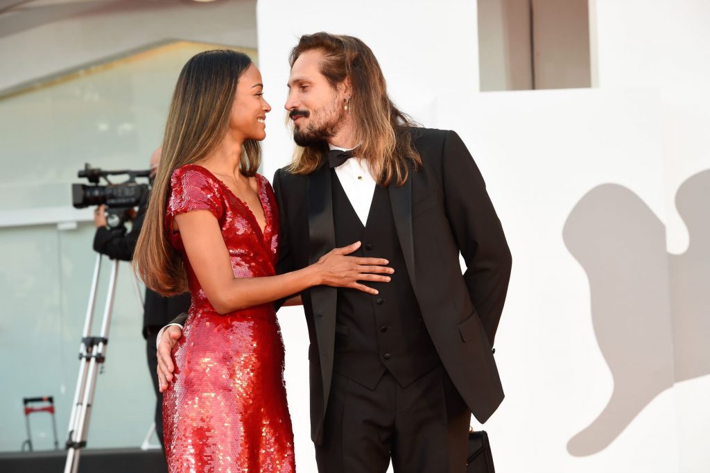 L’actrice américano-dominicaine Zoe Saldana arrive pour la projection du film “E stata la mano di Dio” (La Main de Dieu) présenté en compétition lors du 78e Festival du film de Venise au Lido de Venise, 02/09/2021.