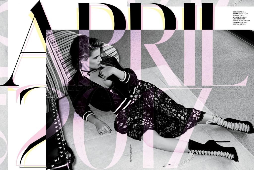 Voici de nouveaux scans avec Zoey Deutch du magazine C (avril 2017). Zoey Deutch est une actrice américaine (The Year of Spectacular Men (2017)). Âge : 22 ans (née le 10 novembre 1994).